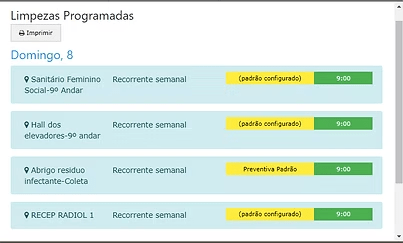 As Limpezas Programadas definem lugares que necessitam de higiene periódica.