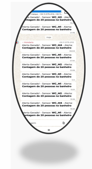 Um grande impacto de eficiência no atendimento desta unidade de saúde foi a automação que fizemos com os Botões Inteligentes. Assim que um procedimento termina e a equipe assistencial libera o ambiente, neste momento eles apertam um botão para a equipe de Higiene da Alsa Fort ser acionada. Abaixo temos um recorte do grupo de WhatsApp utilizado para notificações, que mostra que o acionamento foi realizado às 12 horas e 44 minutos, e que a profissional acionada, em 4 minutos, chegou e fez a ação de limpeza e desinfecção em 4 minutos do ambiente do procedimento. Ou seja, tivemos um giro muito eficiente, o que não causou atrasos na fila da unidade.